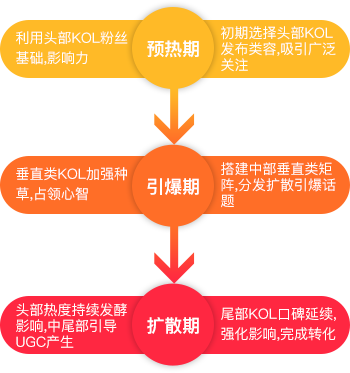 搭建金字塔型KOL矩陣,通過互動話題和不同量級KOL的排兵布陣,實現(xiàn)全面擴散甚至病毒式傳播。階段式持續(xù)推動營銷信息擴散;